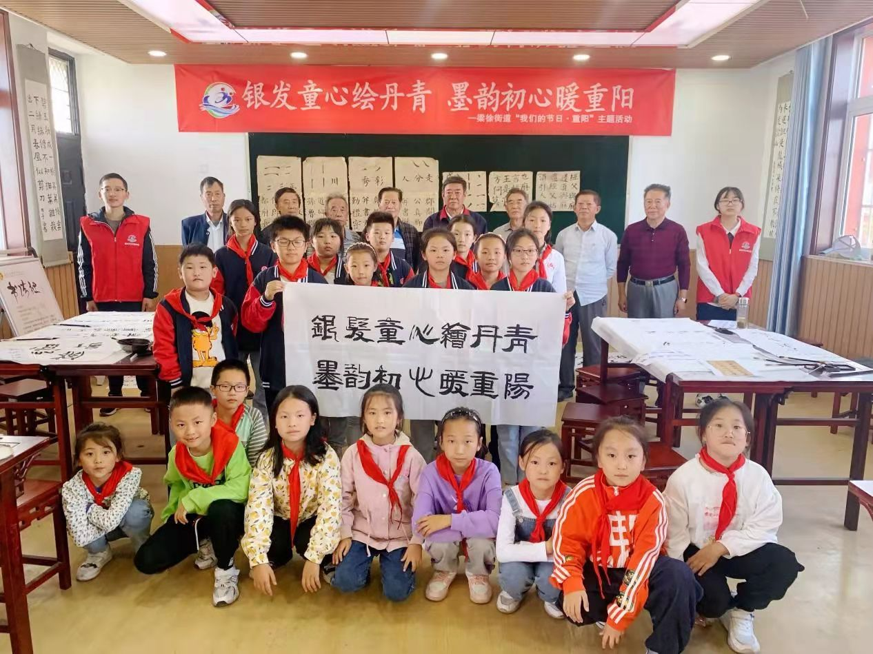 三水街道老干部代表王长荣同志,题字“银辉耀三水”,展示三水党建品牌,寄托“银发生辉”美好期盼。梁徐街道组织老干部支部10余名老干部与20名少先队员一起挥墨书重阳。老干部们“手把手”教孩子们掌握握笔姿势,“一老一小”的温暖氛围在书法教室弥漫开来。