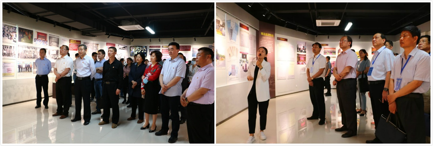 (左:山东老年大学全体干部职工重温老年教育发展历史 右:全省老干部局长党史学习教育专题读书班成员到史料馆参观学习)