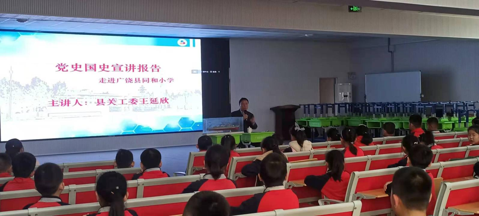 10月21日,东营广饶县关工委在广饶县同和小学举办“爱党爱国爱家乡”报告会。“爱党爱国爱家乡”报告团成员王延欣、县同和小学有关领导及100余名师生代表参加了宣讲活动。