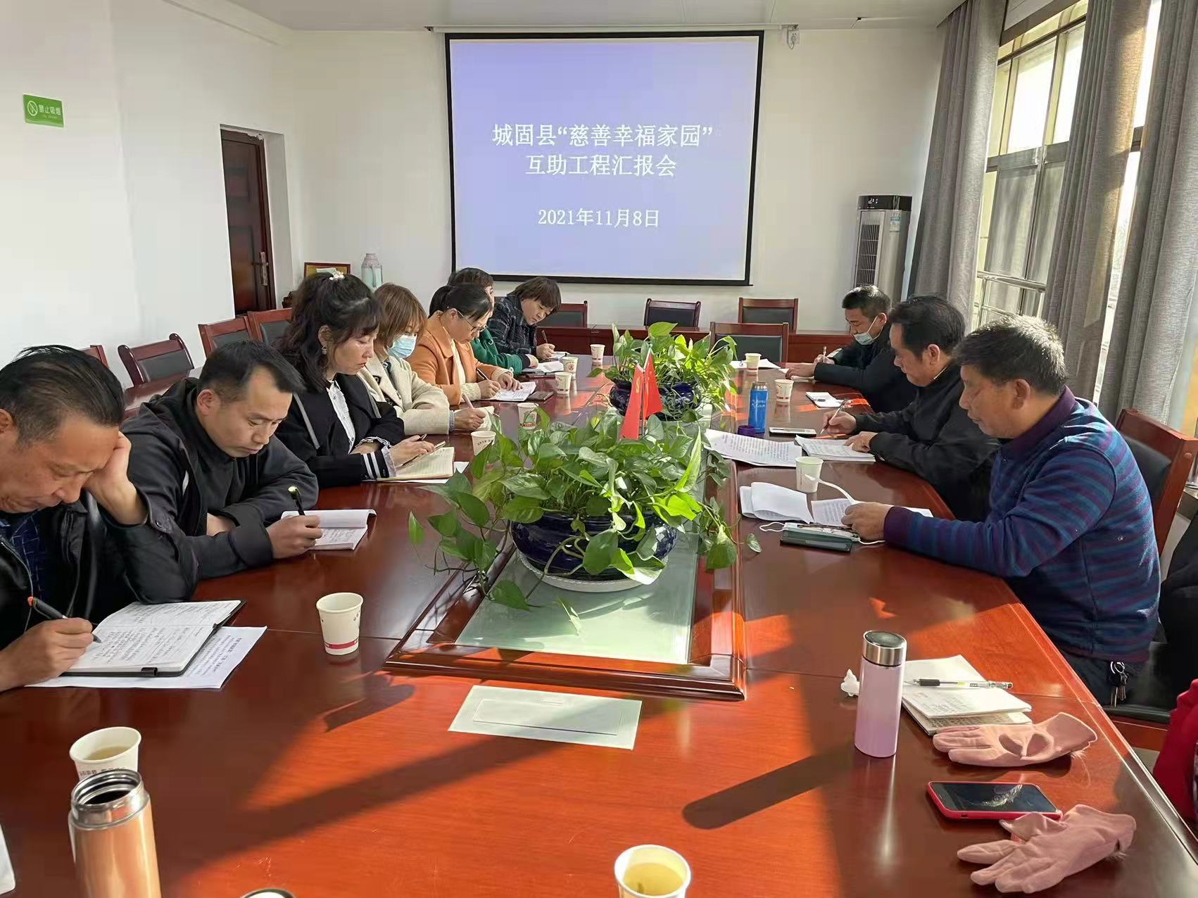 为认真贯彻落实全省幸福家园互助工程观摩推进会精神,促进全县幸福家园互助工程试点建设有力有序,高效推进,11月8日,陕西汉中市城固县召开了全县幸福家园互助工程建设汇报会,县民政局副局长刘俊杰出席,县慈善协会副会长张雪梅主持会议,参与试点建设的镇办分管领导、民政办主任、村社区支书、业务骨干约20人参加了会议。