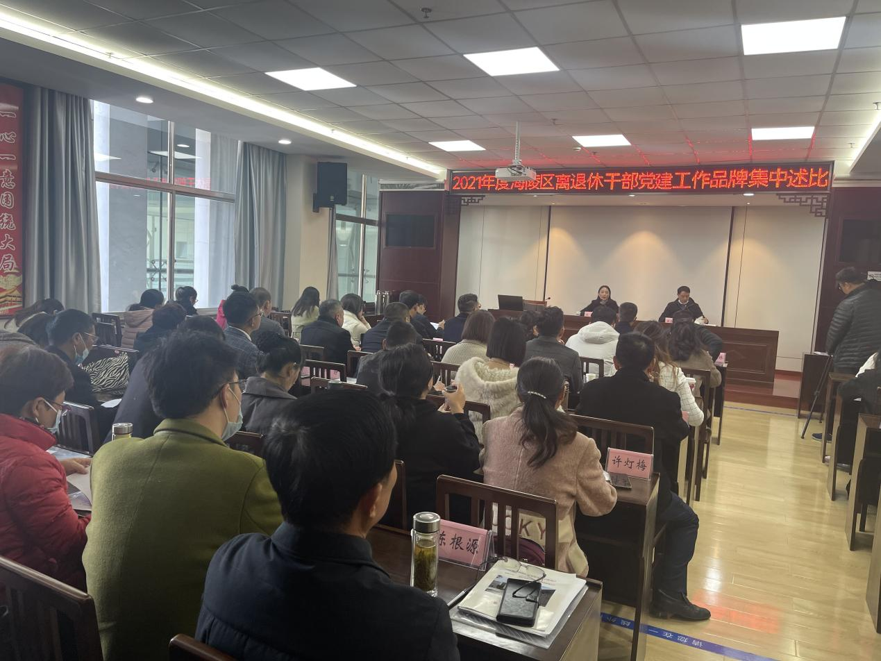 为推动新形势下离退休干部党建工作高质量发展,充分发挥离退休干部党建工作品牌的引领和带动作用,不断强化离退休干部党组织的凝聚力和战斗力,11月10日下午,江苏泰州市海陵区开展2021年度离退休干部党建工作品牌集中述比活动,19个离退休干部党建工作品牌齐聚一堂,精彩亮相,共展风采。活动由海陵区委离退休干部工委专职副书记金胜舜主持,以“三化三提升”推动述比落在实处、取得实效。