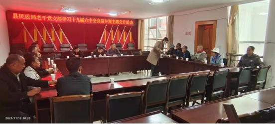 11月12日上午,云南武定县民政局老干党支部在二楼会议室召开学习党的十九届六中全会精神暨主题党日活动,会议由老干支部书记杨澄清同志主持。