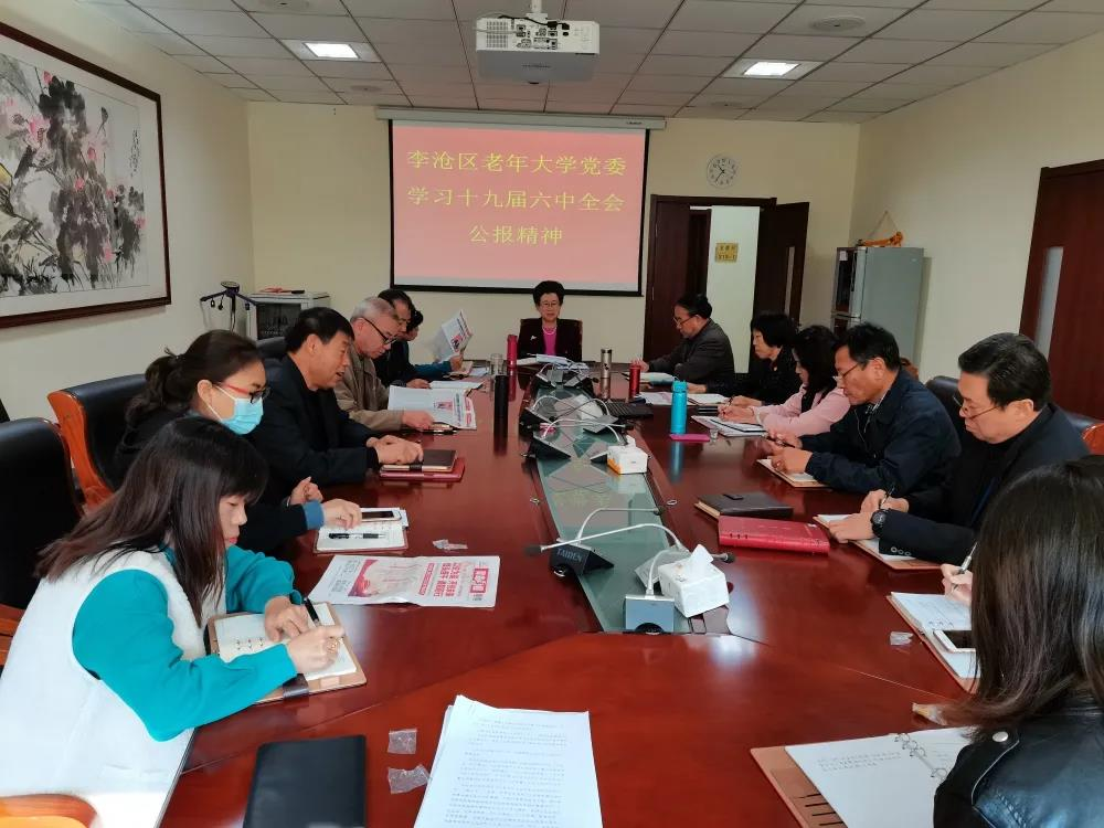 各离退休干部党组织紧密结合当前党组织工作开展情况,把学习党的十九届六中全会精神与党支部示范提升工作结合起来,边干边学、边学边干、以学促干,各离退休干部党委纷纷召开年底工作总结部署会,细化贯彻落实措施。老干部协会红色宣讲团制定学习宣讲计划,两所老年大学党委启动校园宣讲,各支老干部志愿服务队伍积极参与社区治理活动,老党员用实际行动,贯彻全会精神,擦亮李沧老干部先锋号品牌。