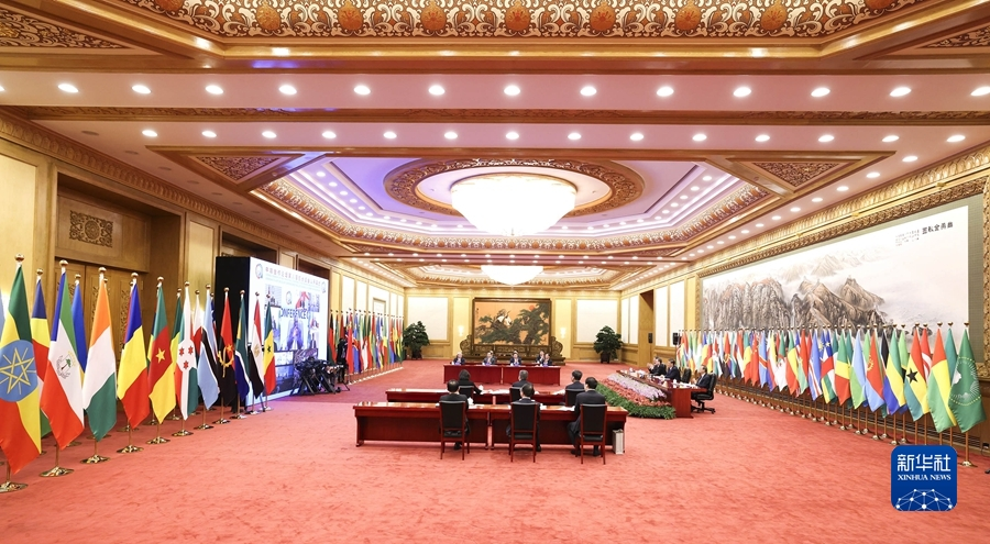 11月29日晚,国家主席习近平在北京以视频方式出席中非合作论坛第八届部长级会议开幕式并发表题为《同舟共济,继往开来,携手构建新时代中非命运共同体》的主旨演讲。新华社记者 黄敬文 摄
