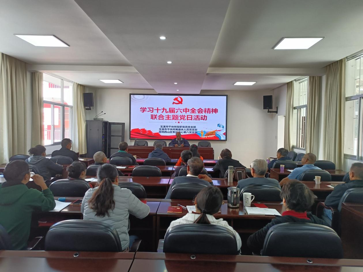 近日,云南玉溪市干休所(离退休干部服务中心)在职党员支部、离退休人员党支部与昆明西山区军休中心第八党支部联合开展主题党日活动,深入学习贯彻党的十九届六中全会精神,动员和激励党员干部和老同志切实把思想和行动统一到党中央重大决策部署上来。