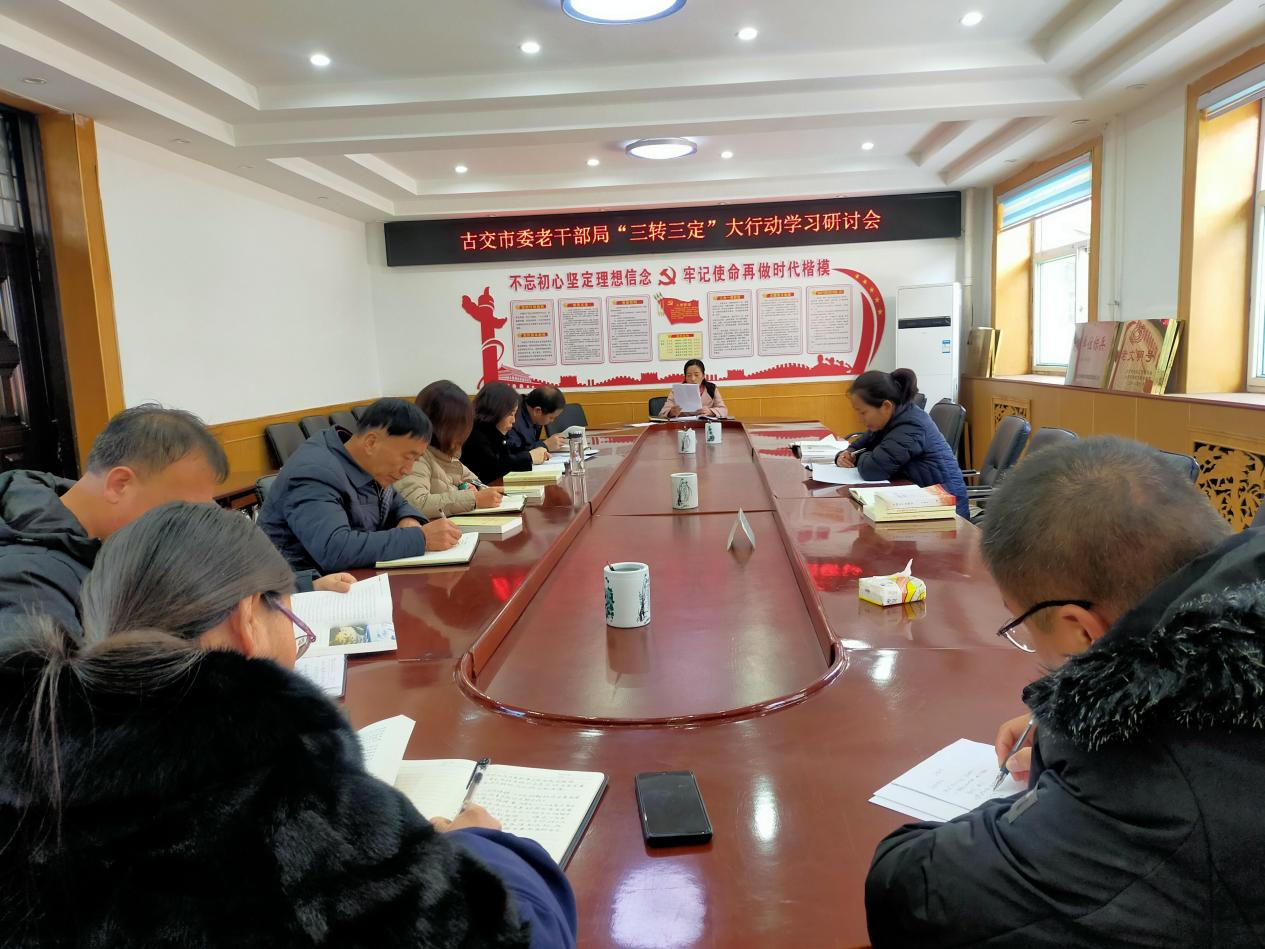 11月23日,山西古交市委老干部局组织全局工作人员开展了“三转三定”大行动专题学习研讨。当前,在全省全方位推动高质量发展的重要时刻,古交市开展“三转三定”(即转思想、转作风、转产业,定目标和标准体系、定任务和举措体系、定政策和制度体系)大行动。