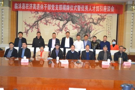 12月11日,临沂临沭县驻济离退休干部党支部揭牌仪式暨优秀人才回引座谈会在济南市历下区召开。临沭县委组织部有关领导,临沭县驻济流动党总支班子成员、各驻济流动党支部书记,临沭县驻济离退休干部代表,临沭县部分在济流动党员和优秀人才代表,临沭县委组织部有关同志参加会议。临沭县驻济流动党总支书记卢丙开同志主持会议。