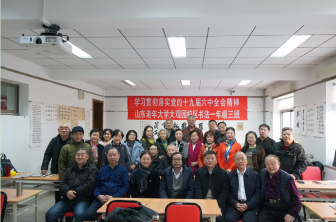 冬至刚过,济南的天气变得格外寒冷,街道上稀疏的行人,在瑟瑟寒风中行色匆匆。但是在位于纬三路的山东老年大学大观园校区内,书法专业一年级三班的学员正为书法展忙得火热。党的十九届六中全会的胜利召开,在老年大学广大学员中引发热烈反响。为学习贯彻落实党的十九届六中全会精神,学员们利用所学所思创作了一幅幅书法作品,从不同的角度表达了对会议精神的深刻理解,抒发了热爱党、热爱祖国的深厚情感。