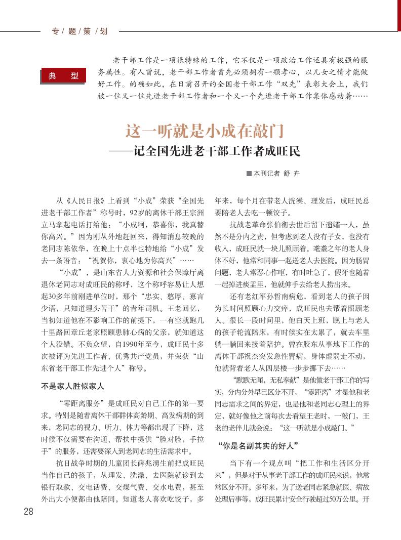 这一听就是小成在敲门——记全国先进老干部工作者成旺民