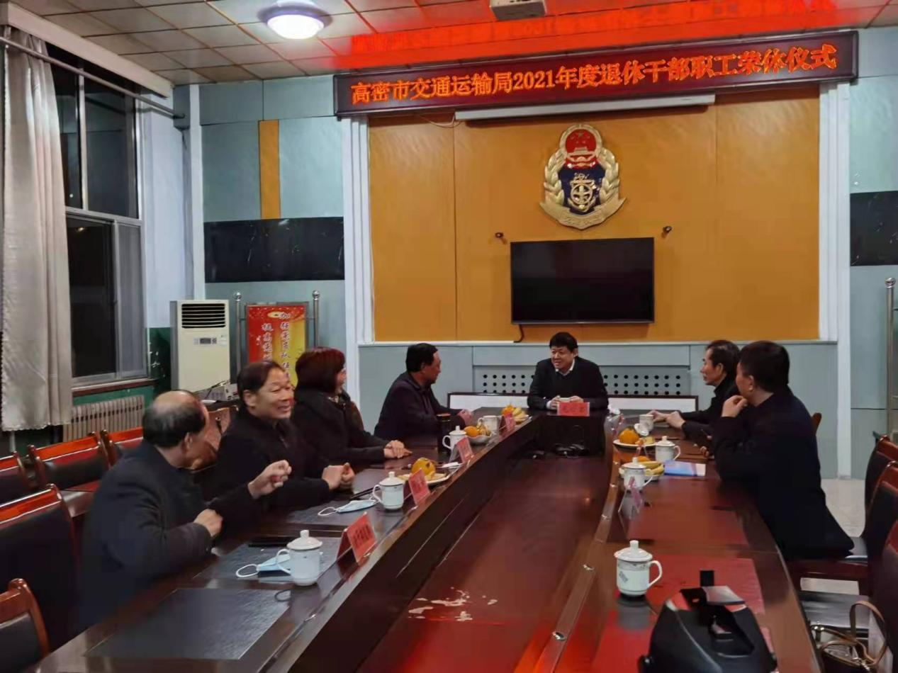 近日,正值寒冬时节,潍坊高密市交通运输局会议室里却是一片暖意融融,该局正在为退休干部毛居斌、刘宗斋举办一场有温度的荣休仪式。荣休仪式由交通运输局党组书记、局长毛新君主持,离退休干部党支部成员、老干部代表、机关在职干部代表参加。