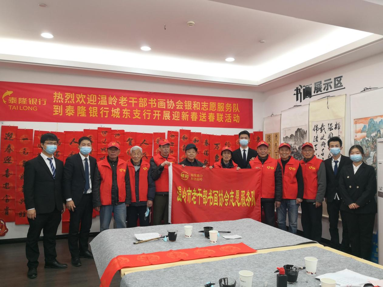 俗话说,无联不成春,有联春更浓。在新春佳节临近之际,为增添吉祥喜庆的节日气氛,浙江温岭市老干部书画协会志愿队组织成员进企业、进农村,开展“迎新春,送书画、送春联”活动。