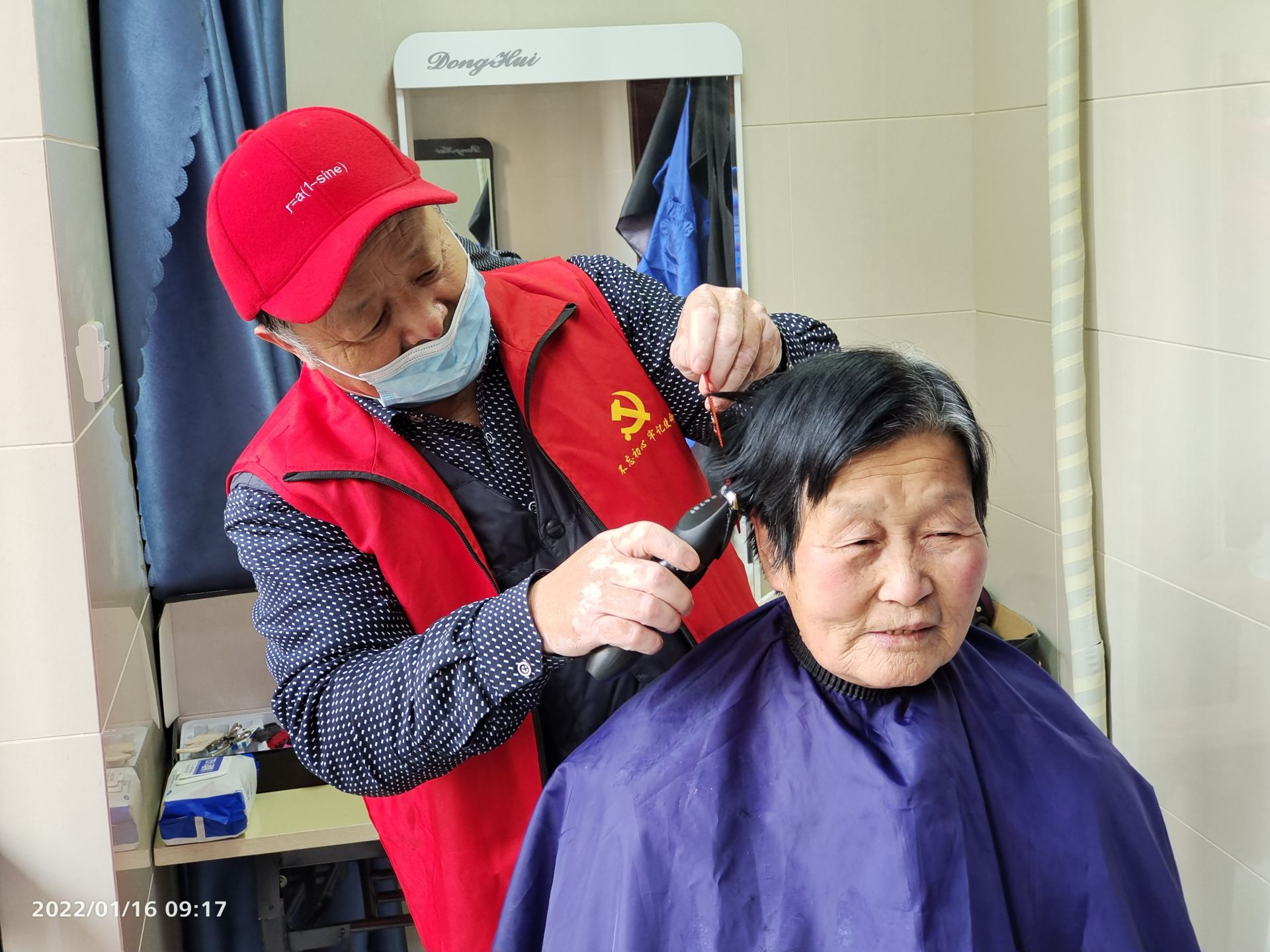 去年夏天,小区成立了“红齐剪吧”,有理发手艺的赵立地被朋友推荐来当志愿者,听说是为小区的老年人服务,爽快地答应了。“能自己来的老人就在工作室剪,行动不方便的,我就上门服务。”他边干边说。