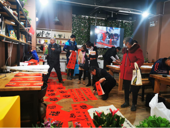 “以前春联都要到市场上买印刷的,如今有书法家现场给写春联,年味一下就出来了。”拿到刚写好的春联,栗子园社区赵大爷脸上笑开了花。