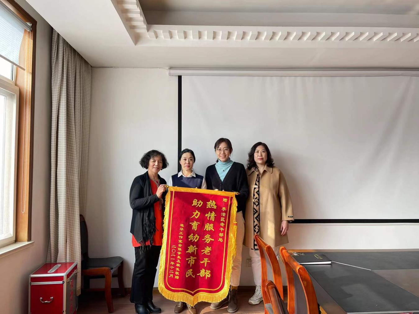 1月17日上午,来自“连华工作室”的两位学生家长,为青岛李沧区委老干部局送来了一面写有“热情服务老干部 助力育幼新市民”的锦旗,鲜艳的红色映照出老干部志愿者六年的艰辛汗水,朴素的话语流露出社区居民对老干部工作的充分肯定。