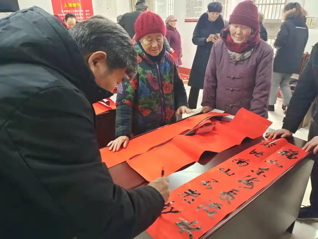 1月21日,枣庄市老干部活动中心、枣庄老年大学组织行书班的师生们到市委老干部局第一书记派驻村——市中区税郭镇南安城村开展“文化下乡写春联·翰墨飘香送温暖”活动,现场为村民书写、赠送春联,送上新春的问候和祝福。