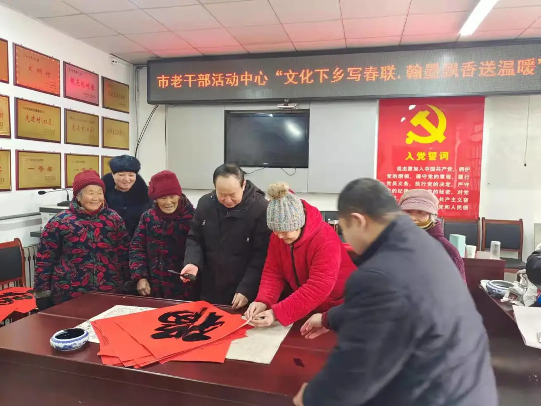 近年来,市老干部活动中心、老年大学紧密结合自身工作实际,深入开展党史学习教育,积极践行“我为群众办实事”活动,组织开展各类文化服务活动,为助力乡村振兴凝聚了广大离退休干部的思想共识、做出了积极贡献。本次活动共送出春联300余幅,受到村民们的一致好评。