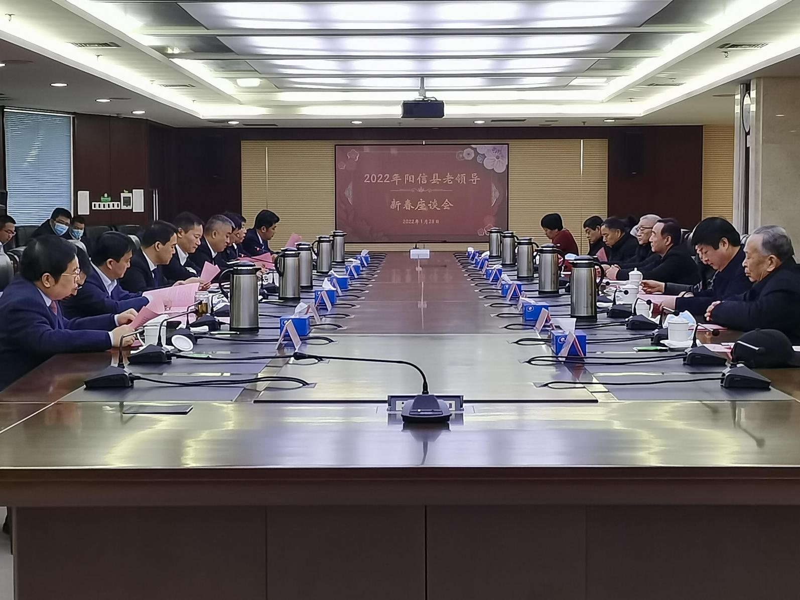 1月28日上午,滨州阳信县召开2022年老领导新春座谈会,县委书记郑令健主持会议并讲话。县领导宋全星、郭昕、闫福利、李秀坡、杨德江、李保国、李华伟、岳金辉和部分担任过副县级以上领导职务的老同志参加座谈。