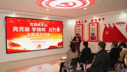 近日,新疆哈密市委老干部局党支部、干休所党支部与伊州区阿牙社区党委联合开展“党旗映天山——亮党徽、学榜样、见行动”主题党日活动,在职党员干部、离退休干部党员30余人参加活动。