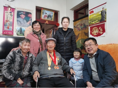 在离休干部王耀亭家中,县委副书记袁亭聚与92岁高龄的王老亲切交谈,详细询问了生活情况、身体状况,感谢他们为新中国作出的贡献,并向王老介绍了我县经济社会发展情况。当听到老干部近况不错,身心健康,领导也倍感欣慰,嘱咐老同志及其家属要保重身体,保持乐观心态,传承红色基因。年逾九旬的抗日战争老战士王跃亭身体硬朗,胸前挂着战争中荣获的军功章和“纪念抗日战争胜利”等纪念章,并高兴地和袁副书记说到,感谢各级组织的关心关爱,在宜良县委、县政府的关心照顾下,现在身体很健康,日子过得很开心,祝愿国家越来越强大。