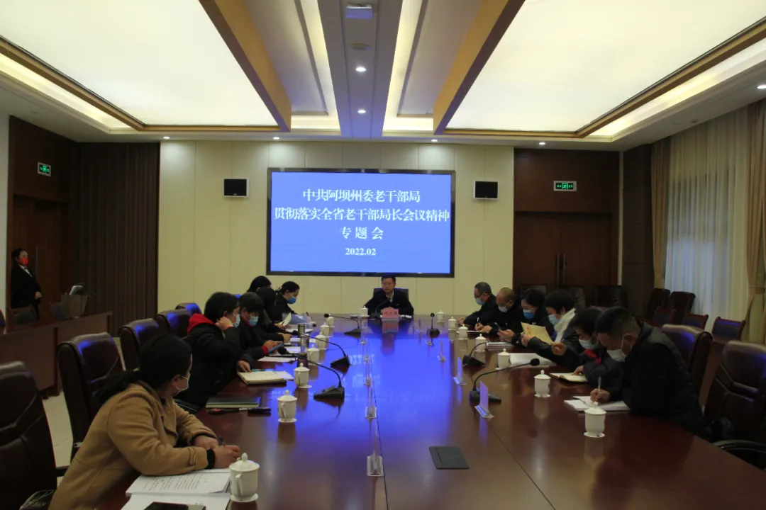 2月8日晚上,四川阿坝州委老干部局召开专题会议,进一步学习传达全省老干部局长会议精神,研究贯彻落实意见。州委组织部副部长、老干部局局长何元辉主持会议并讲话,州委老干部局班子成员、局机关各科室及各干休所负责同志参加会议。