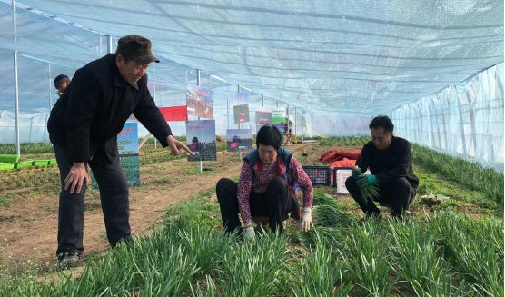 近日,潍坊高密市夏庄镇大金钩韭菜示范园迎来了虎年的头茬韭菜大丰收,清晨春寒料峭,只见棚内一片翠**滴,生机勃勃的景象。在这里与菜农一起忙碌的还有一群戏称自己是“科技保姆”的银发长者,连日来,他们早早来到韭菜示范园,利用所学知识,手把手指导菜农科学收割、包装,帮助抢“鲜”上市。小有名气的网红“带货大叔”张家书动作娴熟的摆好手机支架开始直播,说起大金钩韭菜的营养价值,他如数家珍、滔滔不绝,引来众多网友的围观下单,短短1小时,销售头茬韭菜200余斤。
