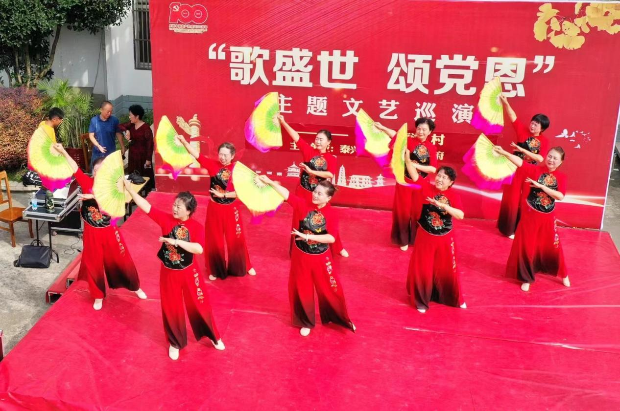 传承基因,凸显红色文化“饭圈”效应。泰兴是苏中革命的摇篮,这里红色资源丰富,沈毅建立了扬泰地区第一个党组织,陈毅领导了新四军黄桥决战,粟裕在此指挥了苏中七战七捷的首尾两战。该团用现代样板戏和诗朗诵的形式讴歌沈毅、沈安娜、杨根思等革命英雄,用活家门口的红色资源,宣扬革命先烈的英勇事迹,提升红色文化引领力。红歌红舞是该团的一大特色,为庆祝中国共产党建党100周年,他们精心编排了《没有共产党就没有新中国》《五星红旗》《幸福中国一起走》等歌伴舞节目,释放红色文化吸引力。该团常态化组织“红色文化进乡村”文艺演出活动,突出红色主题,讲述红色故事,赞美新生活,讴歌党的光辉历程和领导人民进行革命、建设和改革所取得的历史性成就,增强红色文化感召力。