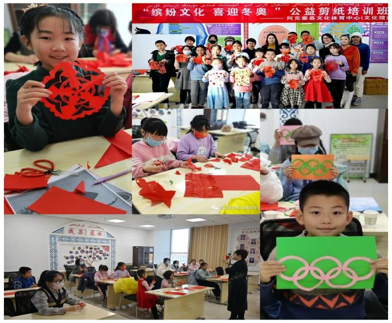 为进一步培养青少年对文化艺术的兴趣与爱好,传承中华民族优秀传统文化,运用剪纸艺术助力冬奥。文化体育中心举办民间剪纸培训班,由敦煌市市级剪纸传承人庄生娟进行授课。活动中,老师一边讲解一边耐心地给大家示范,学员们认真观察着、学习着、临摹着……一把剪刀,几张红纸,纸随剪转,心随纸动,一张一张创意剪纸在学员们的手中活了起来,大家把剪好的作品衬在白纸之上互相探讨学习,现场气氛十分轻松愉悦。
