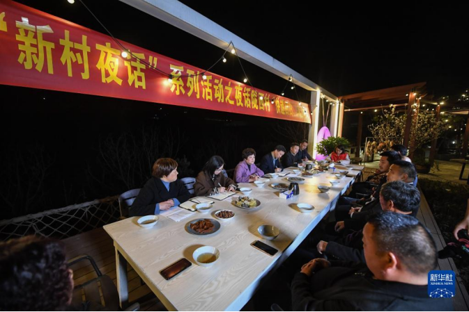 浙江省桐庐县钟山乡乡贤代表、民宿业主代表、桐庐县乡两级人大代表以及党员和村民代表在钟山乡参加“新村夜话”讨论活动(2021年2月22日摄)。新华社记者 徐昱 摄