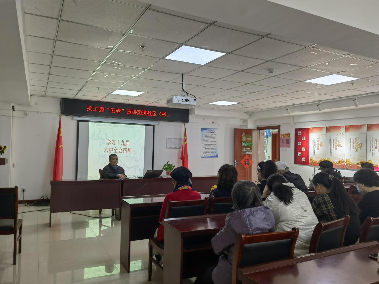 区“五老”宣讲团成员王新华做了精彩宣讲,他紧紧围绕十九届六中全会《决议》的意义、基本内容、新时代党员要求等方面进行详细讲解,进一步丰富居民的政治生活,再次掀起深入学习十九届六中全会精神的热潮,引导广大民众切实把思想和行动统一到全会精神上来。