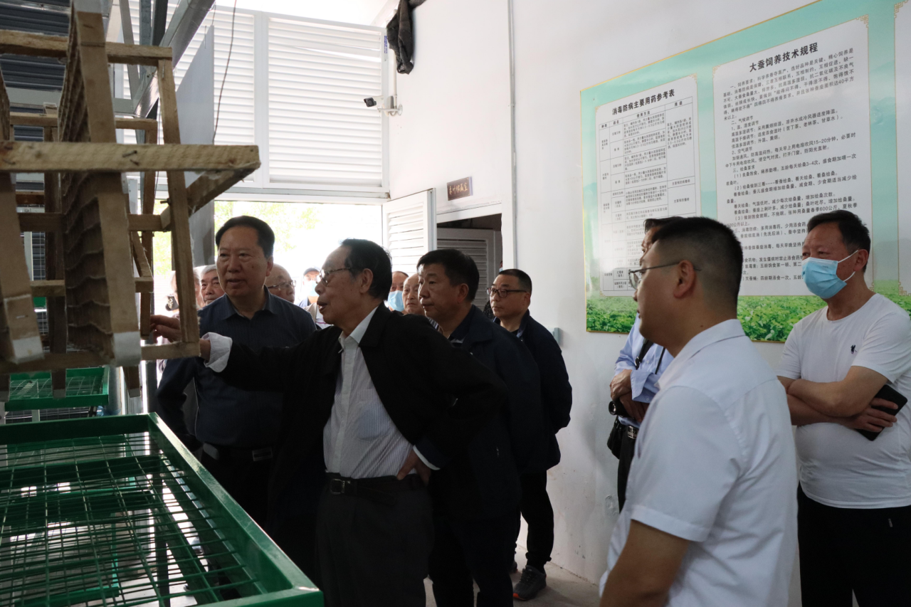 在嘉乐镇人民村,老同志们听取了镇党委负责同志关于乡村振兴示范区建设规划和蚕桑产业发展情况的介绍,实地参观了标准化蚕房,了解养殖过程及养殖技术。在调研过程中,老同志们不时与当地负责同志交流,对蚕桑产业发展提出了建议,并希望继续发挥好资源优势,壮大主导产业,健全产业链条,提升现代农业产业化发展水平,切实助农增收,更好地融入乡村振兴发展大局。