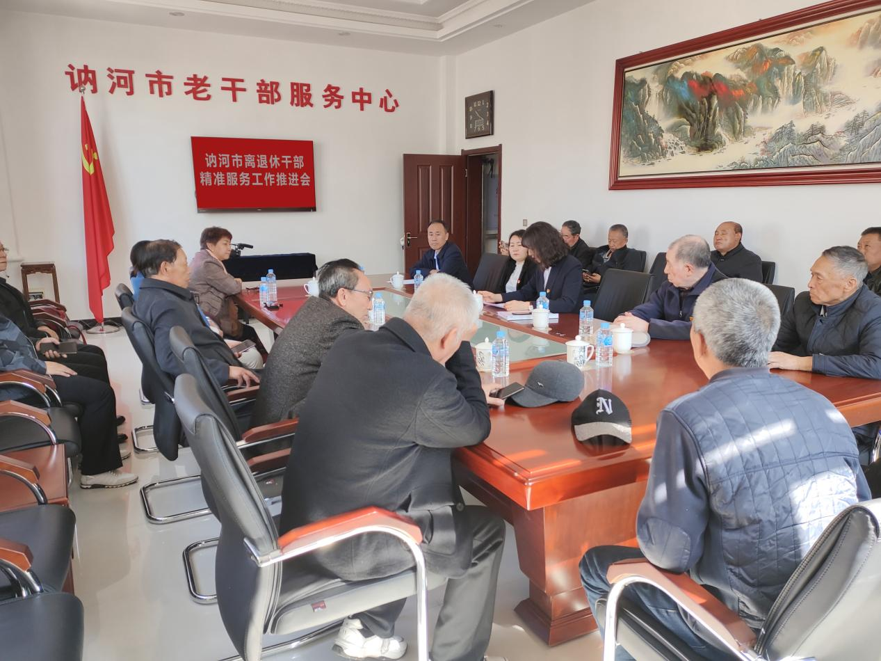 近日,讷河市组织召开老干部精准服务工作推进会,发放56张“老干部精准服务卡”,明确了精准服务干部、老干部原单位及老干部服务中心以及市委组织部的职责,提出了老干部精准服务“八举措”具体要求。一是政策待遇全面落实。认真落实好老干部政治待遇、生活待遇,及时将有关政策传达并落实到位;二是日常服务及时周到。经常性电话或随时上门了解老干部家庭、身体、生活等具体情况,帮助解决一些实际困难和问题;三是走访慰问积极主动。每月至少到老干部家中走访一次,每半年至少慰问一次,遇到重大情况随时服务;四是重大活动全程保障。解决好老干部参加重大活动、突发事件、体检等活动的服务、用车、接送等各项保障工作;五是看病就医随叫随到。老干部看病就医要做到随叫随到,随时服务,全程陪同,安排妥当,帮助老干部按时报销医药费,重要情况及时汇报;六是送学上门满足需求。每月开展一次送学上门,及时提供文件、书籍、报刊等学习资料,传达中央和省、市有关精神,汇报市委市政府重大决策部署和重点工作进展;七是丰富文娱活动载体。积极组织老干部参加老干部服务中心、老年大学书画、摄影、歌唱、球类等文体娱乐活动,丰富精神生活;八是急难愁盼齐抓共管。建立健全“一人一台账”动态关怀机制,及时了解老干部的实际需求、急难愁盼或特殊困难,向原工作单位、老干部服务中心、市委组织部反映,帮助协调解决。