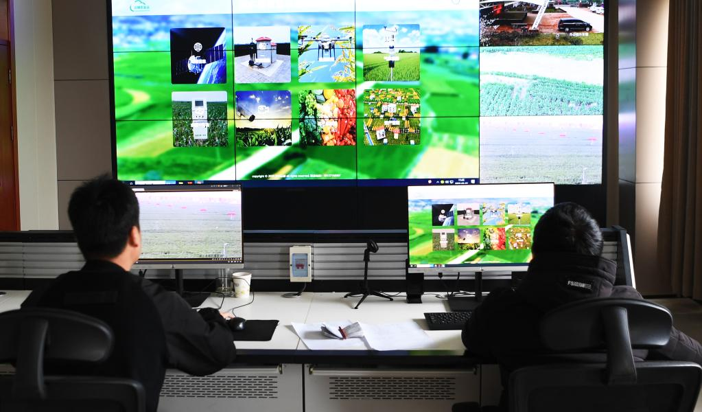 3月22日,工作人员在商水县高标准农田示范区农业物联网控制中心工作。新华社记者 张浩然 摄