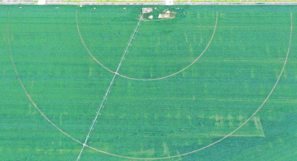 3月22日,商水县高标准农田示范区内正在喷灌作业的麦田。新华社记者 张浩然 摄