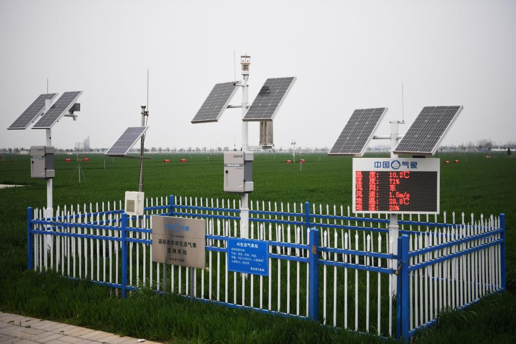 3月22日,商水县高标准农田示范区内的田间气象站。新华社记者 张浩然 摄