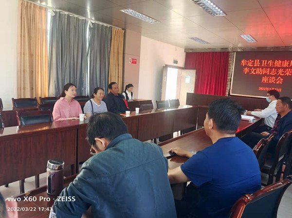 云南楚雄州牟定县卫生健康局认真落实干部荣退制度,切实增强退休干部荣誉感、幸福感和获得感。近日,该局为退休干部李文助举行干部荣退仪式,局党委副书记滕涛、局机关股室长、退休干部李文助及家属参加座谈会。