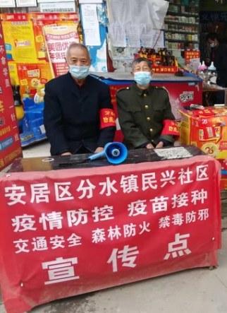 像这样坚守在安居疫情防控一线的“五老”还有很多,在突如其来的疫情面前,本应该受保护的他们,舍弃了安全的居家生活,毅然带上“红袖章”,穿上“红马甲”,手持“小喇叭”,在交通卡口、小区门口、核酸检测点,当起了监督员、宣传员、劝导员。“五老”志愿者们凝聚起的“银发力量”,为安居人民群众的身体健康构建起了一道坚实的疫情防线。