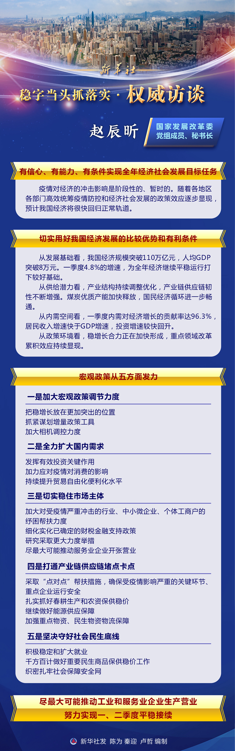 全年经济社会发展目标任务能否实现?将采取哪些政策举措稳住经济、稳住市场主体?新华社记者采访了国家发展改革委党组成员、秘书长赵辰昕。