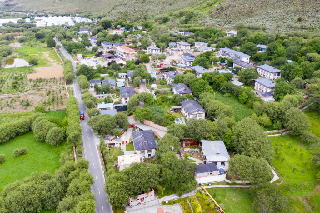 俯瞰林芝市巴宜区林芝镇嘎拉村(无人机照片,2021年7月21日摄)。新华社记者 普布扎西 摄