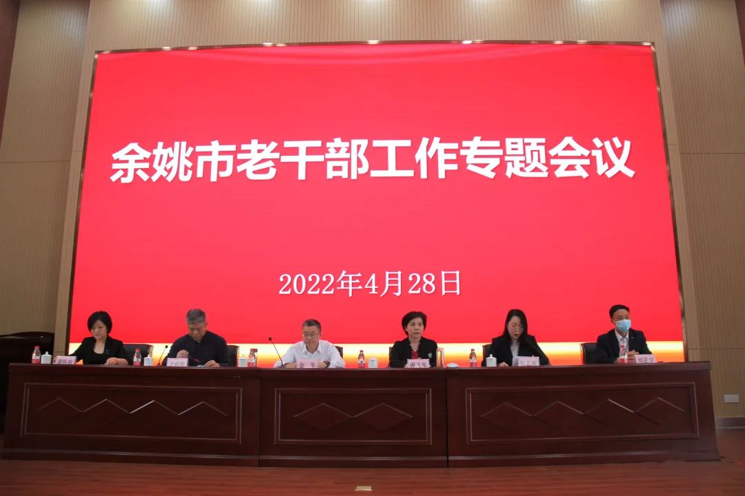4月28日下午,浙江余姚市委组织部、市委老干部局、市人力资源和社会保障局联合召开余姚市老干部工作专题会议。余姚市委组织部副部长、两新工委书记金军,市委组织部副部长、老干部局局长唐飞琴,市人力资源和社会保障局副局长、党委委员金利明,市委老干部局副局长张艺妮,市关工委专职副主任谢科锦,市委老干部局局务会议成员、四级调研员刘正学出席会议。会议由张艺妮主持。各乡镇、街道及市直有关单位具体分管老干部工作的负责人或老干部工作专(兼)管员、城区各社区老干部工作专(兼)管员、受表彰对象等120余人参加会议。