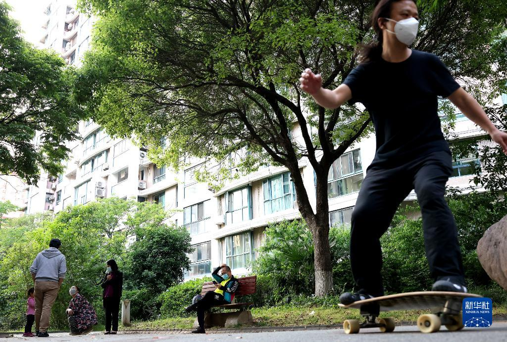 5月17日,市民在上海市普陀区的一个居民小区内享受休闲一刻。新华社记者 陈飞 摄