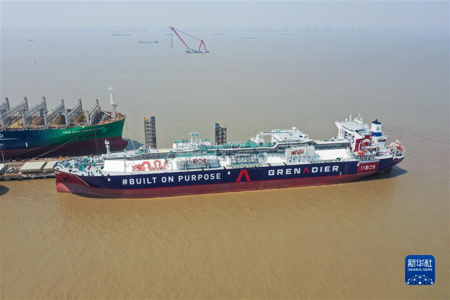 5月16日拍摄的中国船舶集团旗下江南造船建造的99000立方米B型舱超大型乙烷运输船H2625船(无人机照片)。新华社记者 丁汀 摄