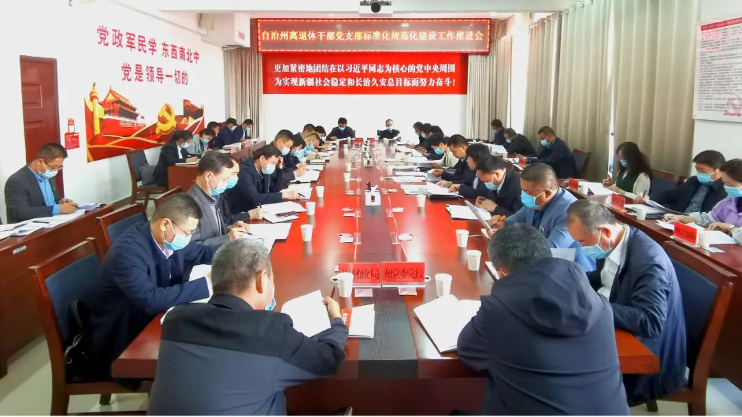 近日,新疆博尔塔拉蒙古自治州(简称:博州)党委老干部局召开离退休干部党支部标准化规范化建设推进会。传达学习《关于加强新时代离退休干部党的建设工作的意见》《自治区离退休干部党支部标准化规范化建设指导意见》,详细解读《自治区离退休干部党支部标准化规范化建设参考指标》。博州党委组织部副部长、老干部局局长陆钰参加会议并讲话。