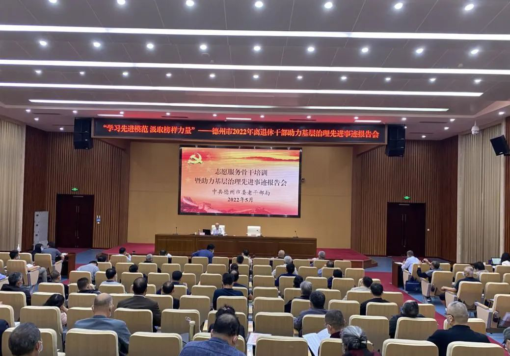 为充分发挥老干部先进模范的价值引领作用,5月19日,德州市召开“学习先进模范 汲取榜样力量”——离退休干部助力基层治理先进事迹报告会,邀请全市老干部先进模范代表杨连印、关东亮等两位老同志分享自己参与社区治理、关心下一代等志愿服务典型事迹。市委老干部局二级调研员王风友主持会议,全市离退休干部党组织书记,2021年来退休市管干部,市县党委老干部局相关负责同志,共100余人参加事迹报告会。