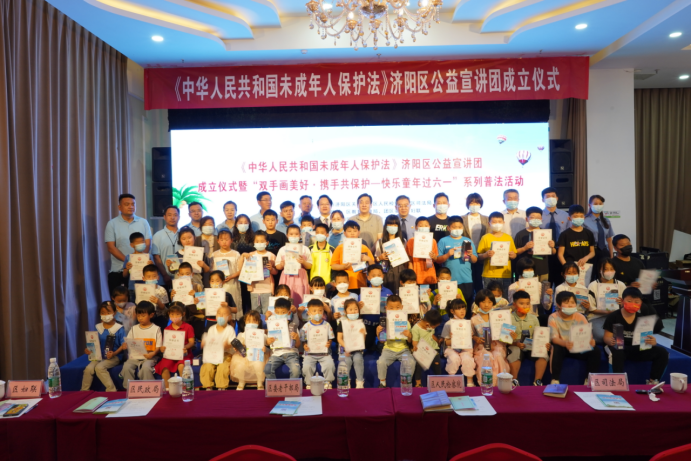 今年5月22日,作为区关工委主要成员的区委老干部局,积极参加并协调区关工委联合各成员单位主办的《中华人民共和国未成年人保护法》济阳区公益宣讲团成立仪式暨“双手画美好,携手共保护---快乐童年过六一”系列普法活动,为孤困儿童送上一份特别的“六一”礼物。活动从家庭保护、学校保护、社会保护、网络保护、政府保护、司法保护六个方面进行了未成年人保护法宣讲。随后,播放了4部未成年人保护案例微电影,邀请律师提供了专业现场法律咨询,为孩子们发放了未保法绘本、卡通纪念水壶、证书等节日礼物。通过这次活动,让关工委相关成员单位携起手来,更好地为全区青少年儿童营造安全、和谐、健康、温暖的生活环境,为帮助未成年人扣好人生第一粒扣子提供了更扎实的保障。