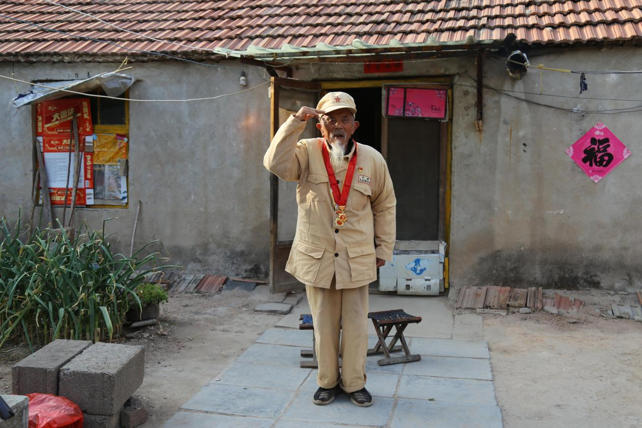 最让人泪目的一幕,是当志愿者要离开时,贾孝本老人立刻抬起头挺直腰板,颤颤巍巍举起右手,对大家说:“我给大家敬个军礼吧,感谢党和人民一直都记得我!”敬军礼的右手过了许久都不肯放下,如山一般的姿势,烙印在了在场所有人员的心里,这就是永不磨灭的红色信仰的力量。