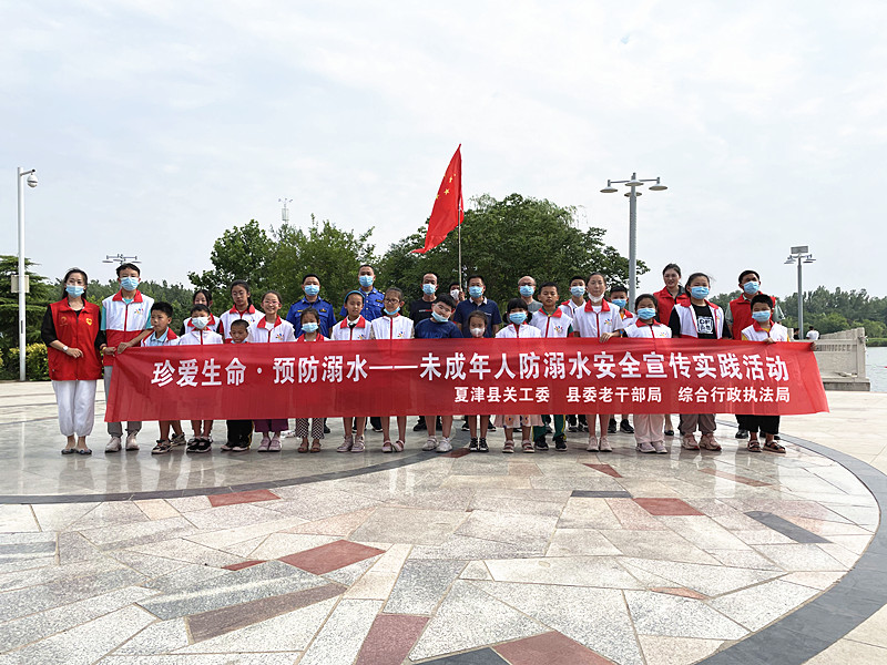 天气炎热,正值防汛救灾和暑期溺水事故高发季节,2022年6月12日,德州夏津县关工委、县委老干部局、县综合行政执法局、大爱同行公益联合会联合在九龙湖畔、会盟公园等地组织开展了“珍爱生命,预防溺水”——防溺水主题教育实践宣传活动,旨在增强广大市民和未成年人的防溺水意识和防溺水能力。县关工委副主任李启贤、县委老干部局副局长冉祥锋、综合行政执法局党组成员于振浩参加活动。