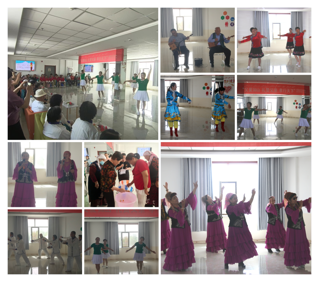 伴随着优美的旋律,活动在开场舞《迎亲》中拉开序幕。随后,金山颂自乐班表演的冬不拉弹唱《我的冬不拉》《可惜了我的父亲》,民族舞蹈《加尔加尔》《站在草原望北京》相继登场,激情四射的广场舞、行云流水的太极拳及柔力球表演等节目轮番上演,老年大学的老师和学员们献歌献舞,内容精彩纷呈、高潮迭起,优美的舞蹈,悦耳的歌声赢得了现场观众的热烈掌声。活动还穿插了趣味游戏“击鼓传花”“夹麻将”等环节。