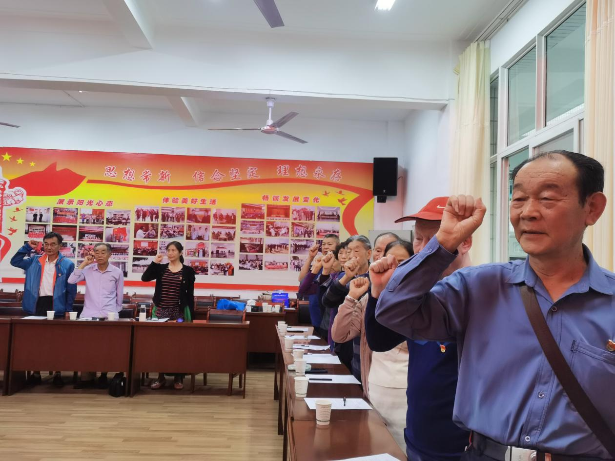 重温誓词忆初心,凝心聚力奋发前行。对党旗重温誓词,激发银发党员赤诚忠心,聚合县委办银发智囊团力量,发挥银龄余热再续航。