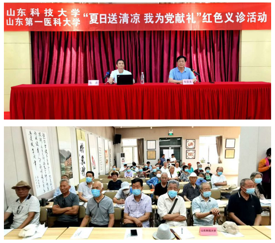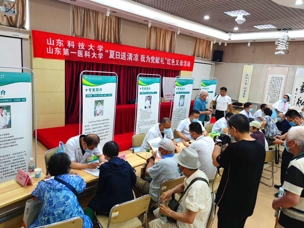 6月24日,“百年再出发 喜迎二十大”系列庆祝活动之——“夏日送清凉 我为党献礼”红色义诊活动在山东科技大学离退休职工活动中心举行。离退休工作处特别邀请来自山东第一医科大学第二附属医院10余个科室的20余名专家,来山东科技大学为离退休职工进行义诊活动,在这个炎热的夏日为老同志们带来沁人心脾的清凉。活动启动仪式由离退休工作处党委书记韦安永主持。