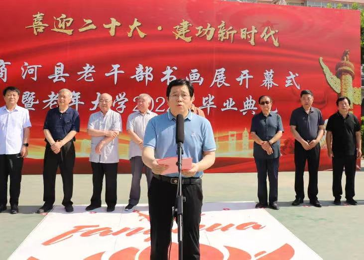 近日,济南商河县举办“喜迎二十大·建功新时代”——老干部书画展开幕式暨老年大学2022届毕业典礼,县老干部书画联谊会会员、县老年大学教师及毕业学员共计120余人参加活动。